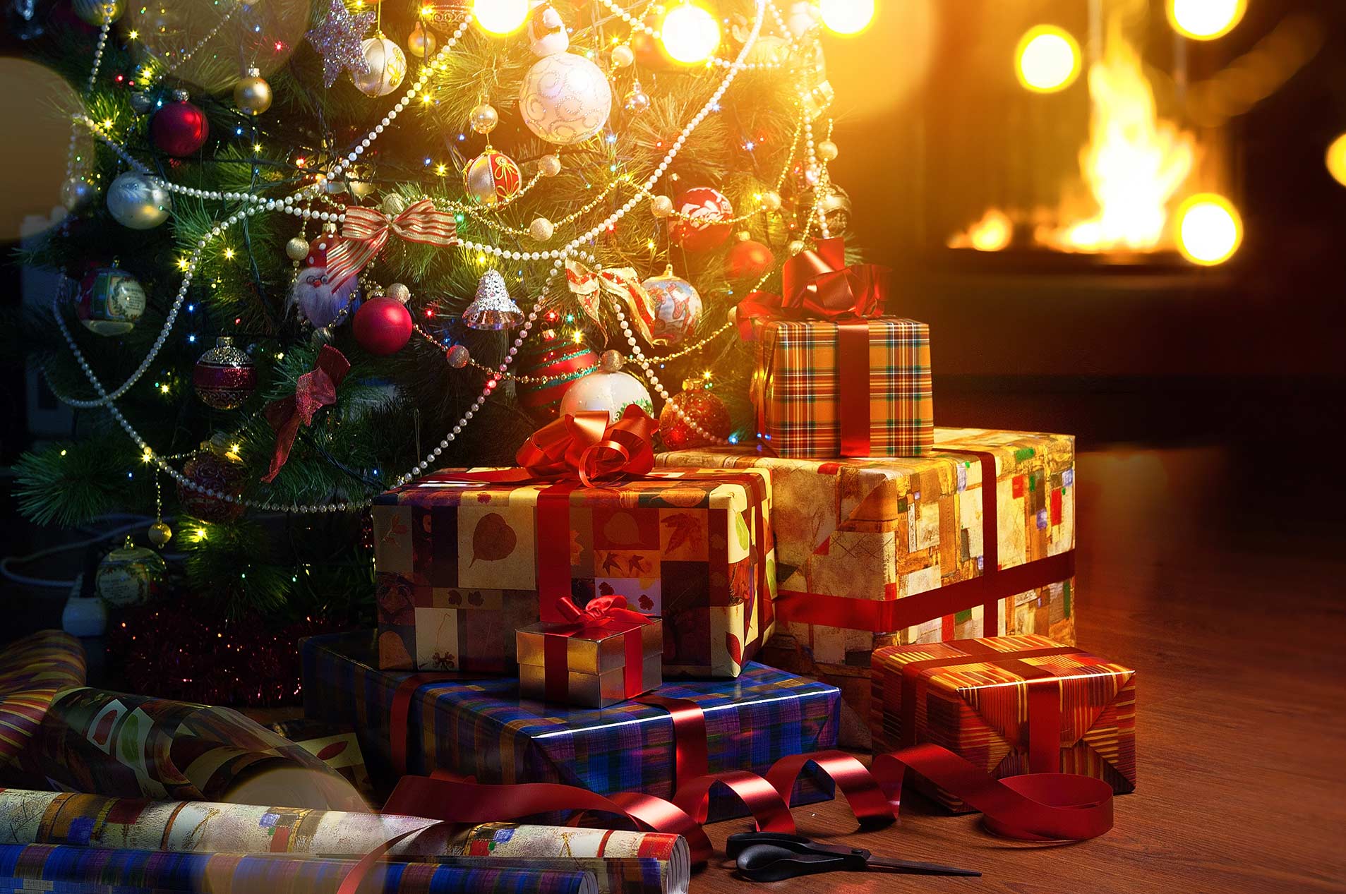 Entspannt Ihre schönen Geschenke während einer stimmungsvollen Bescherung verteilen lassen